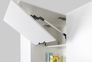 Hettich унифицировал присадку под все уровни оснащения. Меняется только наполнение, корпус и схема раскроя — нет. Простое масштабирование линейки без потери скорости производства.