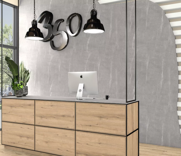 Декор F243 Мрамор Кандела светло-серый выглядит как сочетание мрамора с бетоном, но в нем также просматриваются элементы мелкозернистого камня. Такое разнообразие текстур особенно хорошо смотрится на больших поверхностях. Этому способствует увеличенный раппорт декора в формате XL, который сводит к минимуму повторы в его рисунке. В комбинациях с ним выполненные в теплых тонах нейтральные однотонные декоры или репродукции древесины хорошо сочетаются с теплыми оттенками его прожилок. В структуре ST10 Шероховатые глубокие поры этот декор на ощупь кажется не подвергавшимся обработке грубоватым материалом.