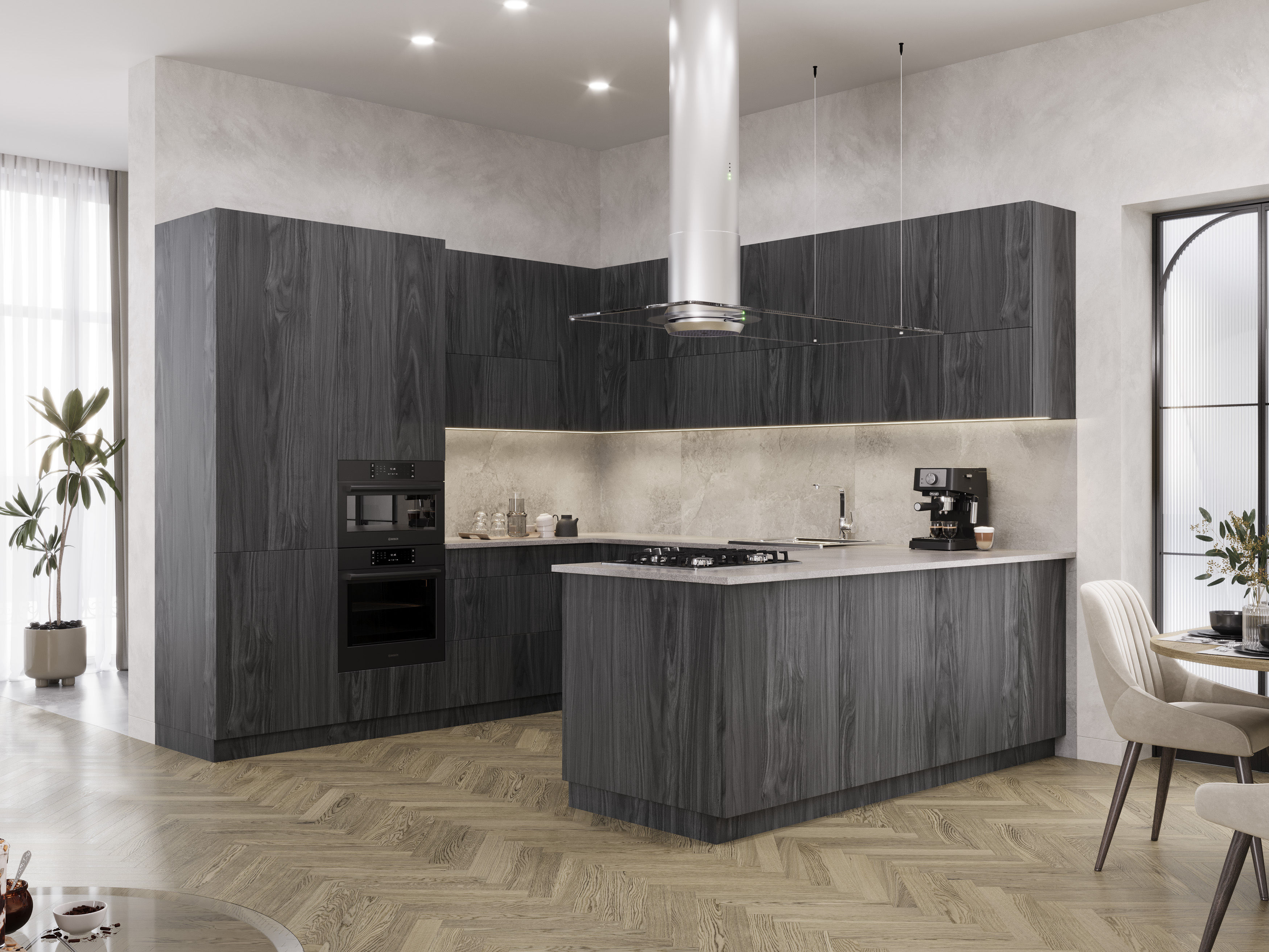 Темный и выразительный декор FOREST Дуб антрацит – идеальный выбор для современных интерьеров. Его насыщенный цвет и глубина текстуры создают ощущение стабильности и стиля, отлично сочетаются с минималистичными и строгими решениями.