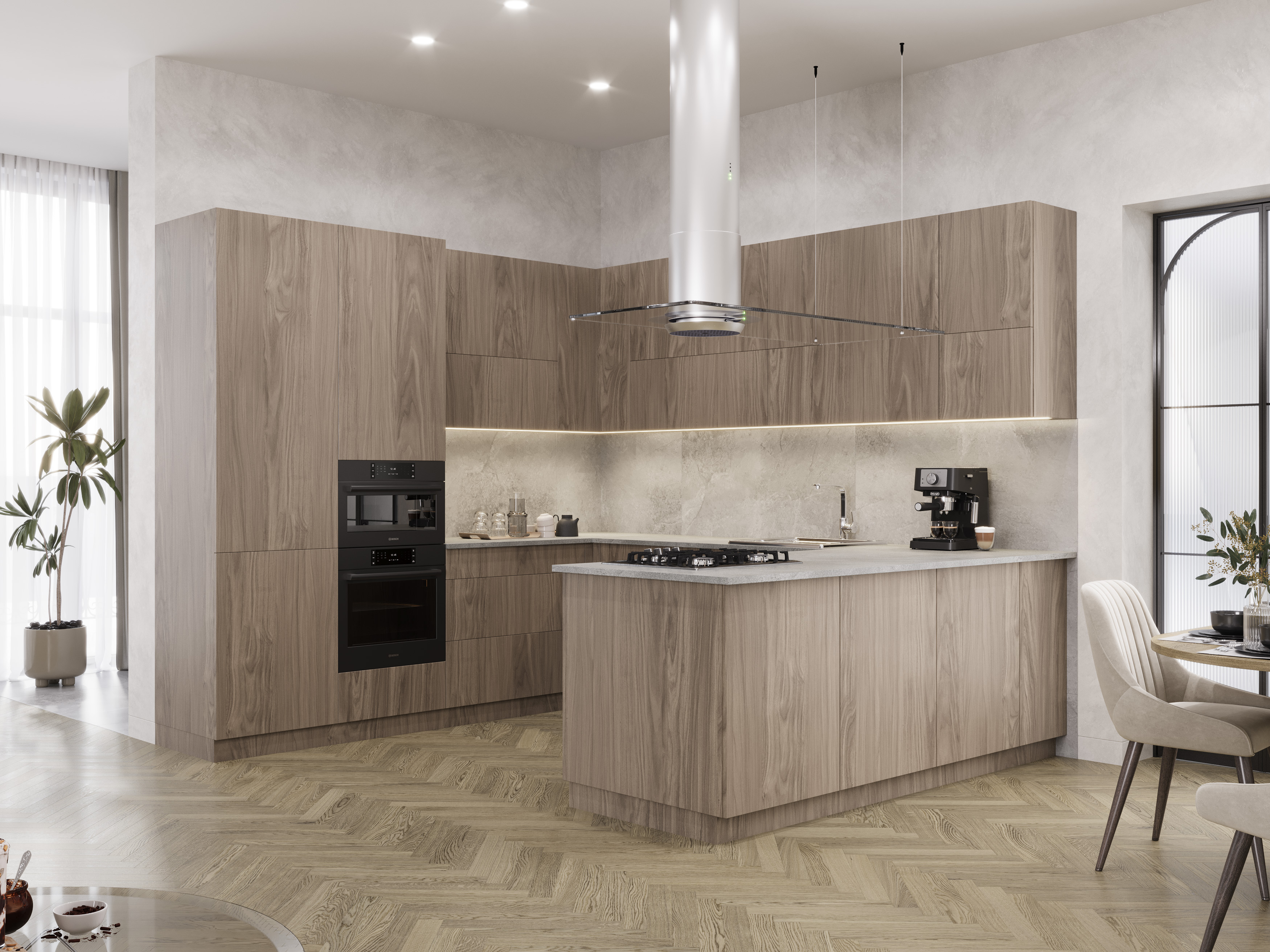 Коллекции FOREST выполнена из технологичных и прочных материалов: в основе – МДФ высокой плотности толщиной 18 мм. Класс эмиссии Е1. Фасады изготовлены по технологии TSS (термоструктурированные поверхности), которая включает в себя нанесение термореактивной смолы на декоративный слой плиты. Фасад становится невероятно прочным и устойчивым к механическим повреждениям. Фактура поверхности с высокой достоверностью имитирует благородные древесные, а также каменные и индустриальные текстуры. Такого эффекта удается достичь с помощью технологии синхронных пор. Она создаёт тактильный и визуальный эффекты текстурной поверхности и придает вашей мебели природную реалистичность. Обратная сторона фасадов идентична лицевой, кромка повторяет тиснение плиты. Материал устойчив к впитыванию пыли и грязи – его достаточно протереть влажной салфеткой. Фасады FOREST имеют высокую устойчивость к бытовым царапинам, истиранию и выцветанию декора.