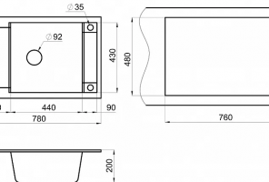 Мойка Модель 150, Прямоугольная Малая 575х470х218мм, Черный Q4  Мрамор