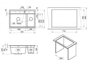 Мойка Модель 110, Овал 730х450х210мм, Черный Q4 Мрамор
