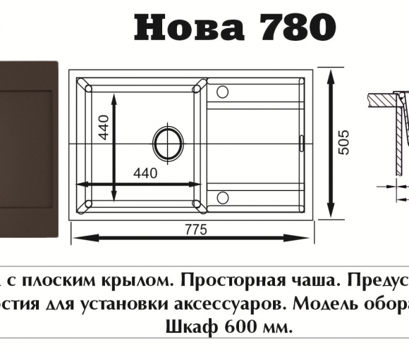 Мойка НОВА Черная 775*505*200мм GRANIT