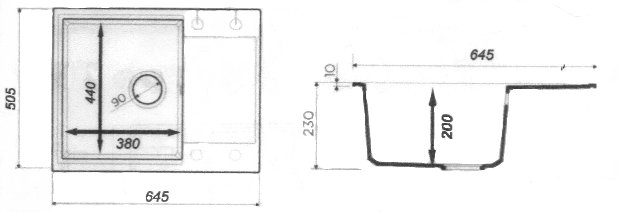 Мойка ЦЕНТРО Серая 645*505*200мм GRANIT