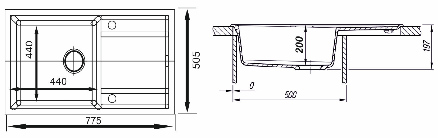 Мойка НОВА Серая 775*505*200мм GRANIT
