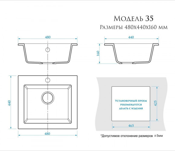 Мойка Модель 35, 480х440х160мм, Черный Q4 Мрамор