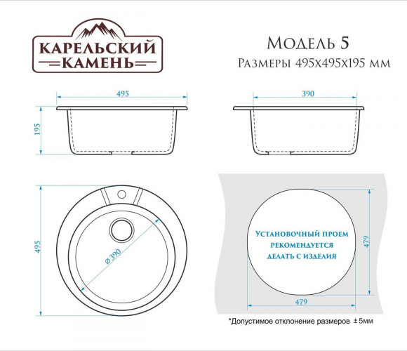 Мойка Модель 5, Круглая D495мм, Черный Q4 Мрамор