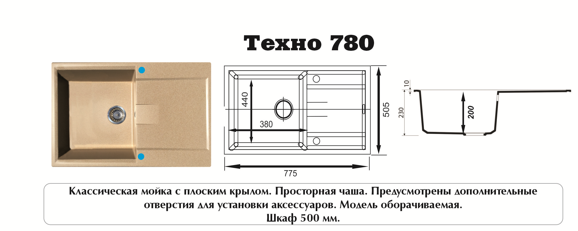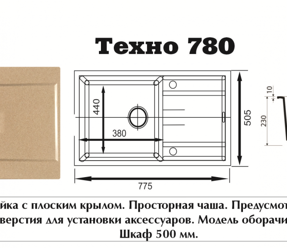 Мойка ТЕХНО-780 Темно-Серая 780*500*180мм GRANIT