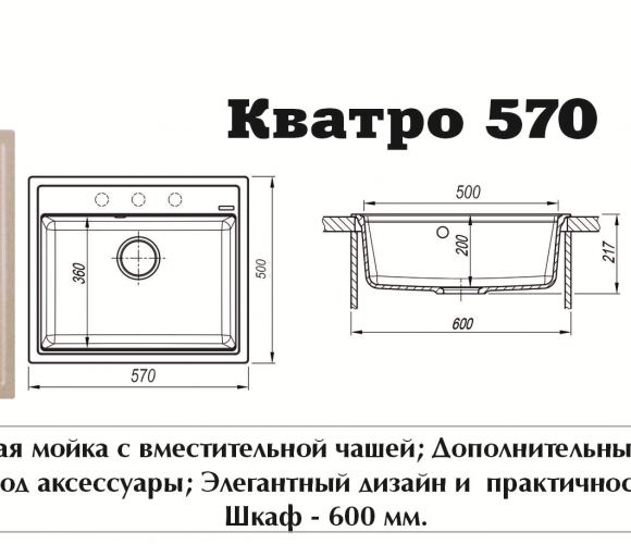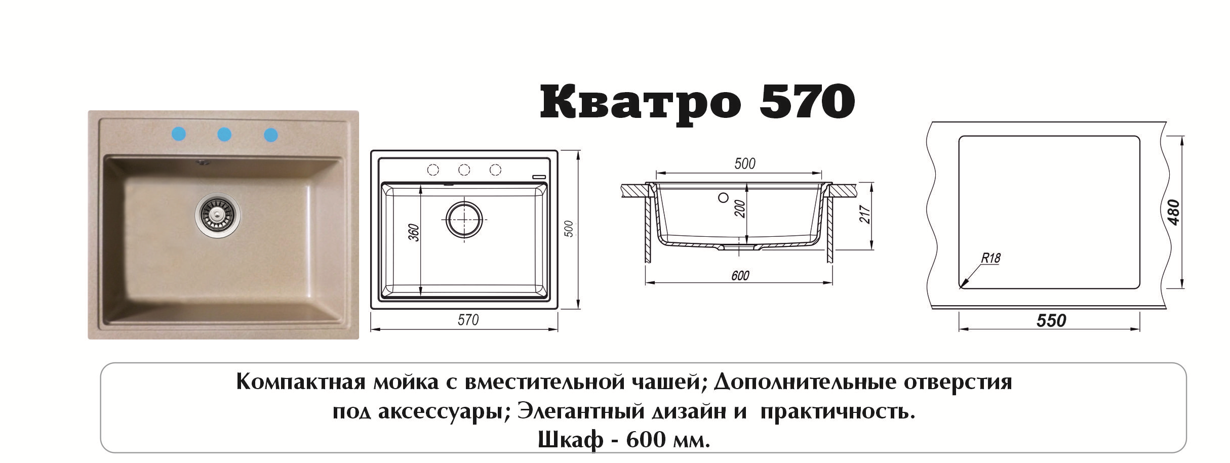 Мойка Кватро-570 Песок 570*500*200мм GRANIT