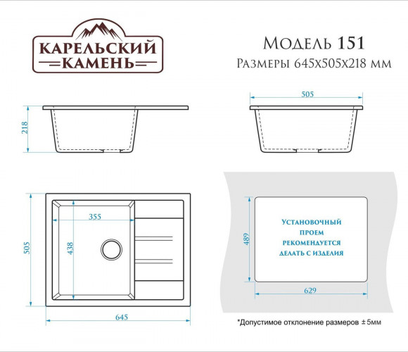 Мойка Модель 151, Прямоугольная 645х505х218мм, Хлопок Q7 Мрамор