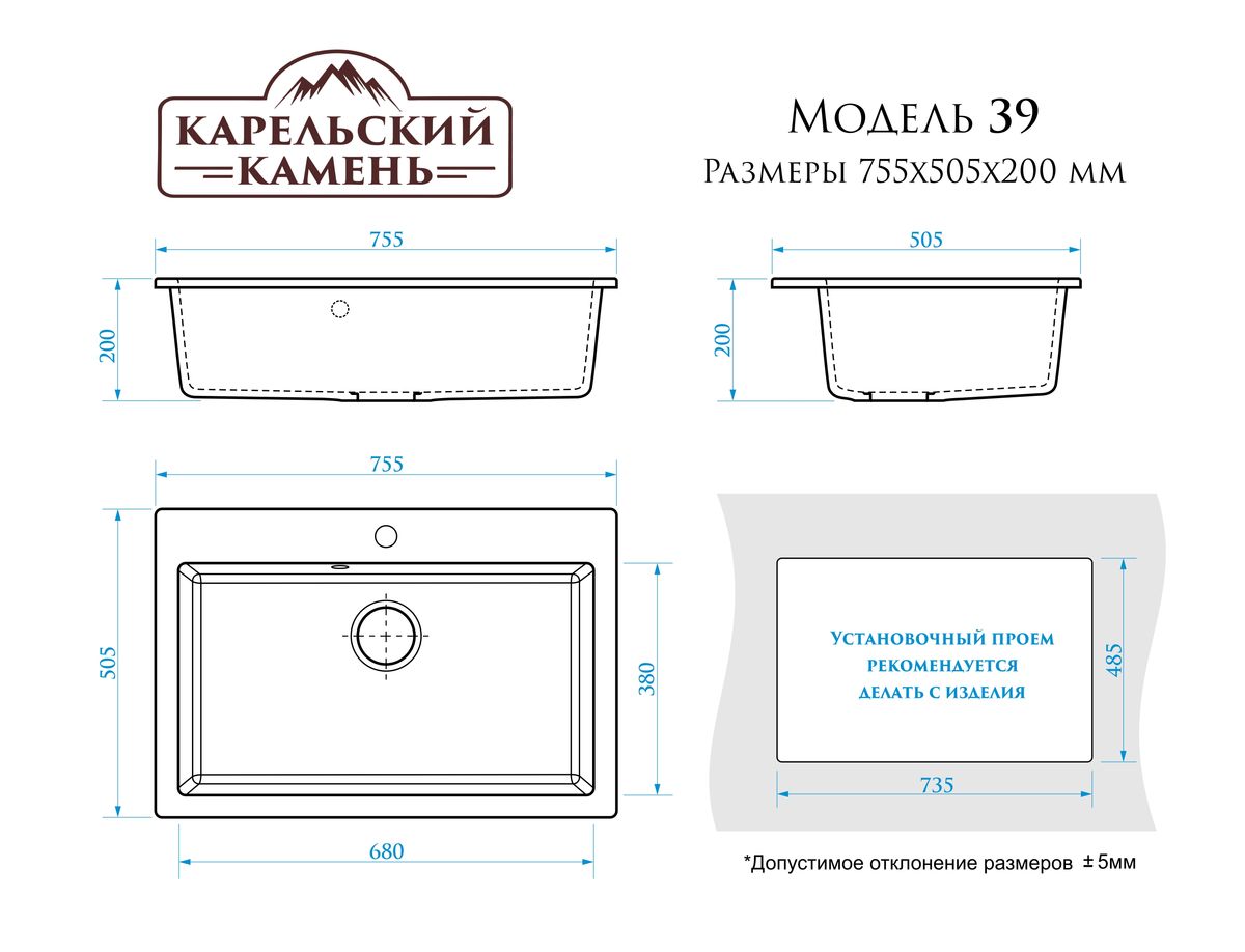 Мойка Модель 39, 755х505х200мм, Бежевый Q2 Мрамор