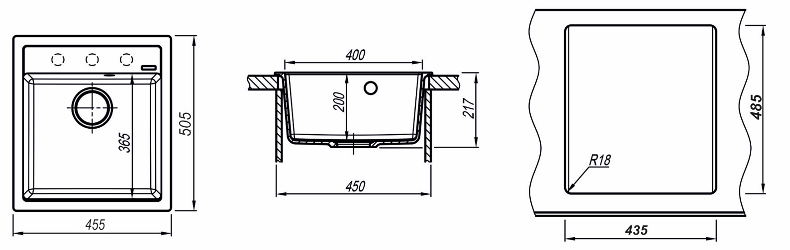 Мойка КВАДРАТ Темно-Серая 455*505*190мм. GRANIT