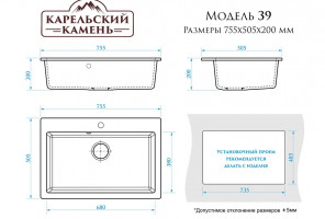 Мойка Модель 39, 755х505х200мм, Черный Q4 Мрамор