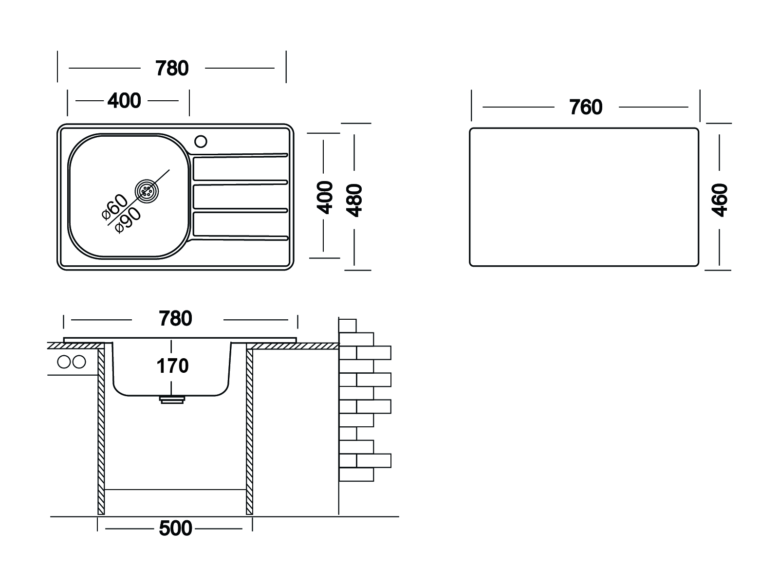 Мойка "Юкинокс" 780х480мм Правая Матовая Гранд GRM780.480 -GT6K 1R (с сифоном S701)