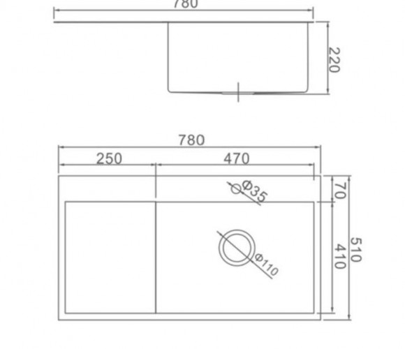 Мойка AFLORN правая R(780х510х230мм, толщ.3мм), Графит