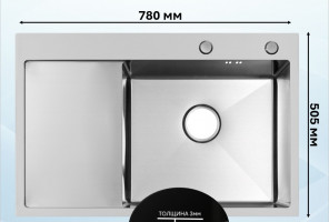 Мойка VANS правая R (780*505*200мм ) SATIN + ДОЗАТОР