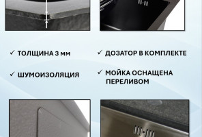Мойка VANS правая R (780*505*200мм ) BLACK + ДОЗАТОР