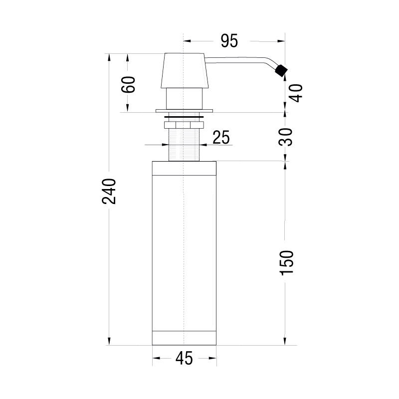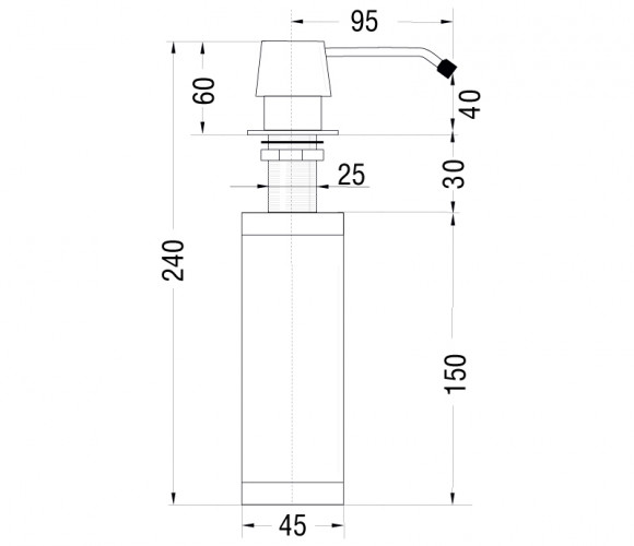 • L =  95  (размер по горизонтали) - размеры указаны для части дозатора над мойкой