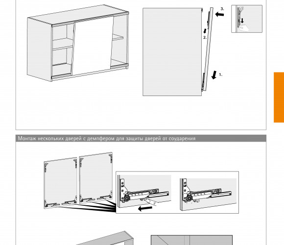Комплект из одного профиля для мебели с раздвижными дверями, двигающимися вдоль друг друга.