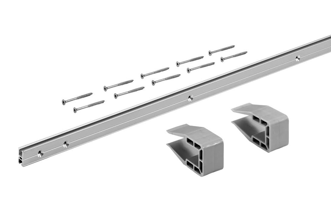 - 1 ходовой профиль, алюминий, серебристого цвета, анодированный, с предварительно просверленными отверстиями