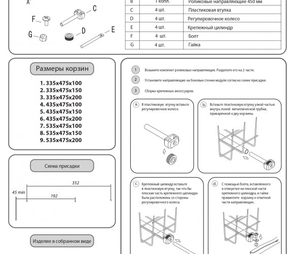 Корзина выкатная сетчатая 335х475х200 серебро SB400/200-SV