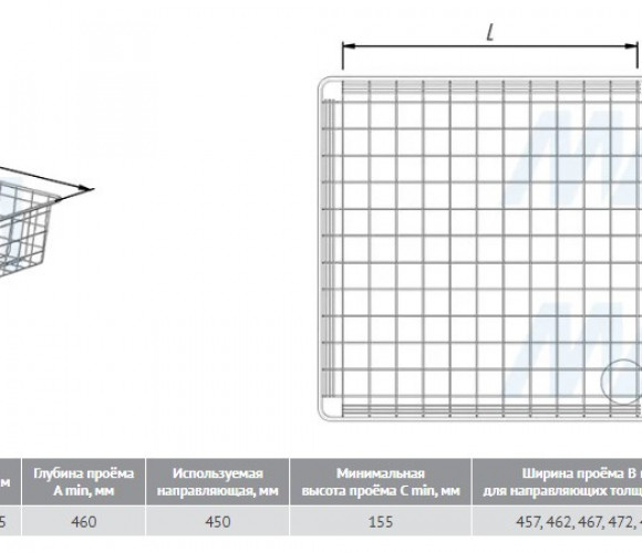 Корзина выкатная сетчатая BASE 120х450х450мм. черный КС124545ЧР