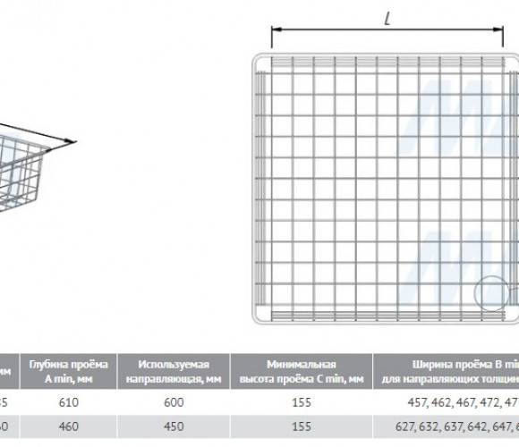 Корзина выкатная сетчатая BASE 120х450х600мм. черный КС124560ЧР