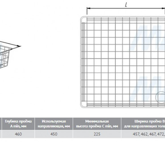 Корзина выкатная сетчатая BASE 190х450х450мм. черный КС194545ЧР