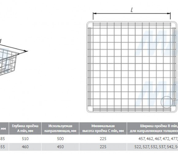 Корзина выкатная сетчатая BASE 190х450х500мм. черный КС194550ЧР