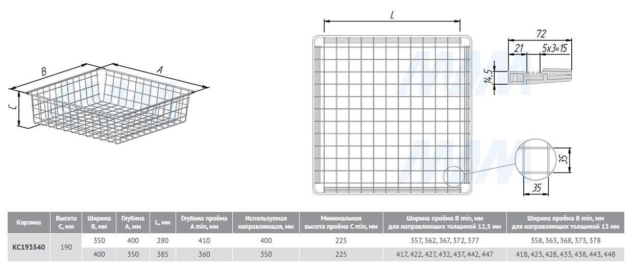 Корзина выкатная сетчатая BASE 190х350х400мм. черный КС193540ЧР