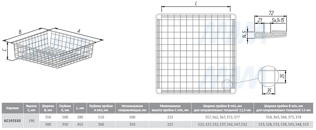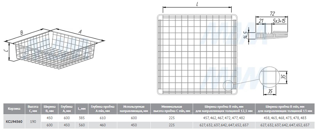 Корзина выкатная сетчатая BASE 190х350х500мм. черный КС193550ЧР