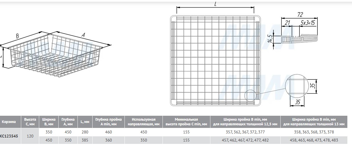 Корзина выкатная сетчатая BASE 120х350х450мм. черный КС123545ЧР