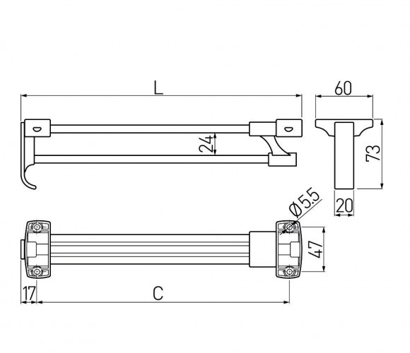 Штанга выдвижная PRESTIGE - вешалка для одежды, устанавливаемая внутри гардеробной. В зависимости от размера шкафа подбирается штанга определенной длины.