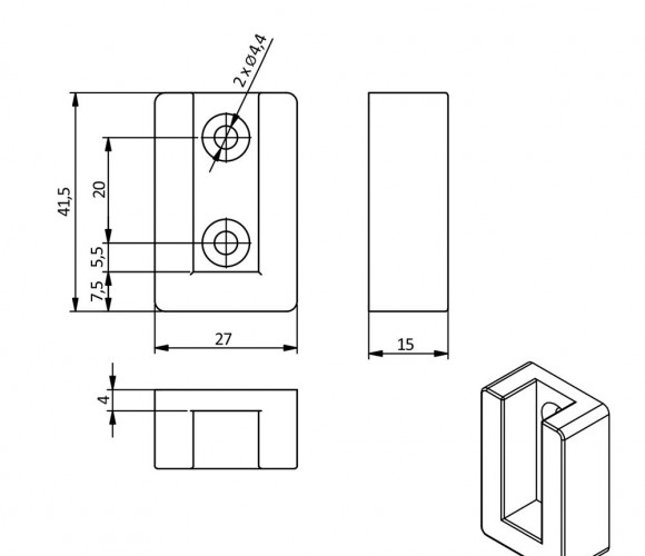 Крепление для прямоугольной штанги с заглушкой, графит - монтажный элемент, предназначенный для установки штанги с антискользящей вставкой внутри шкафа.