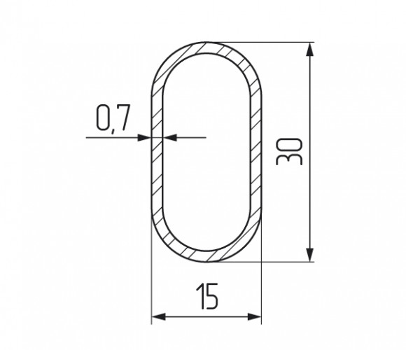 Штанга овальная хром 30х15x3000х0,7мм 111319