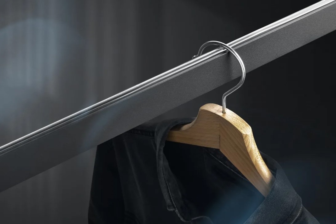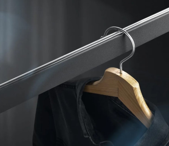 Комплект штанга гардеробная прямоугольная с антискользящей вставкой, 3 м, черная + крепление без заглушки 2 шт. - гардеробная вешалка, устанавливаемая внутри шкафа. Перед монтажом трехметровую штангу распиливают в зависимости от размера шкафа.