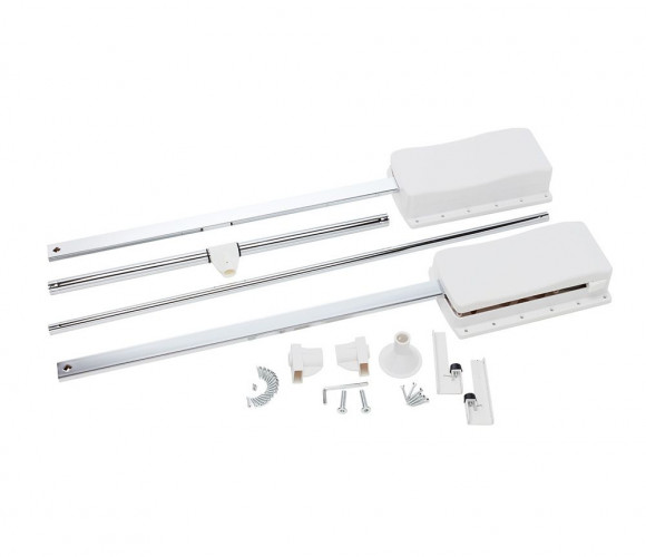 Пантограф 60/83 стальной с газовым амортизатором, белый - гардеробный механизм, посредством которого опускается штанга с одежными вешалками в шкафу. Вы открываете (отодвигаете) дверь шкафа, тянете за ручку механизма, перекладина с вешалками смещается вниз, и вы берете нужный предмет одежды.