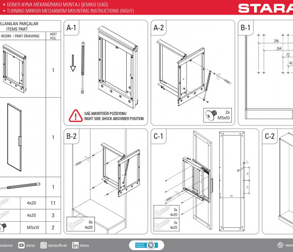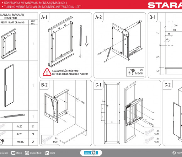 Поворотный механизм для зеркала, 160мм (120х340х1300) S-6612-G серое