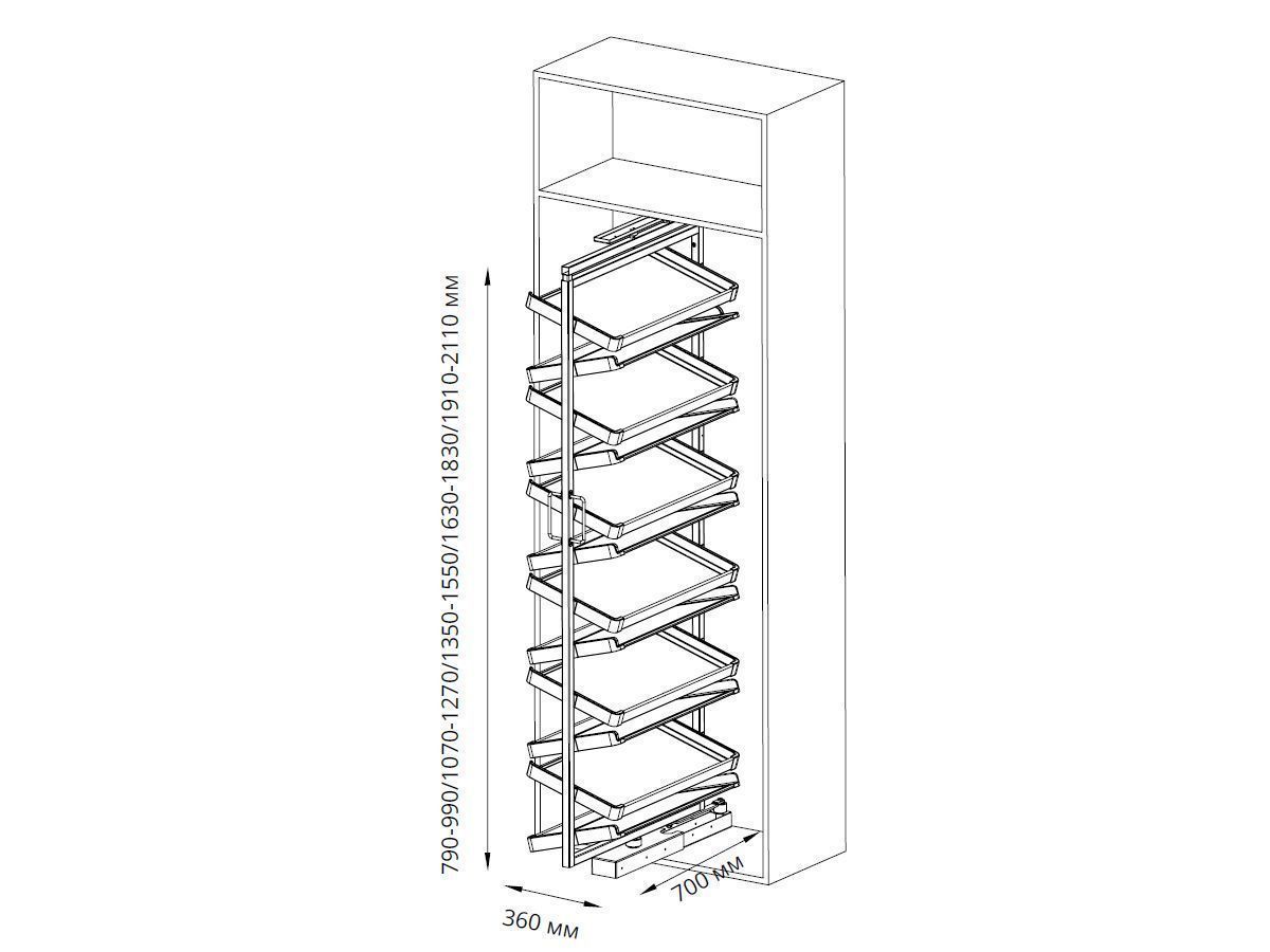 Полка Starax для обуви, поворотная шир. 800мм (700х360х1350-1550), антрацит S-6833-A