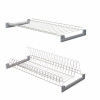 Комплектующие: держатель для посудосушителя, держатель посудосушителя для поддона, рамка телескопическая, поддоны: пластиковый.