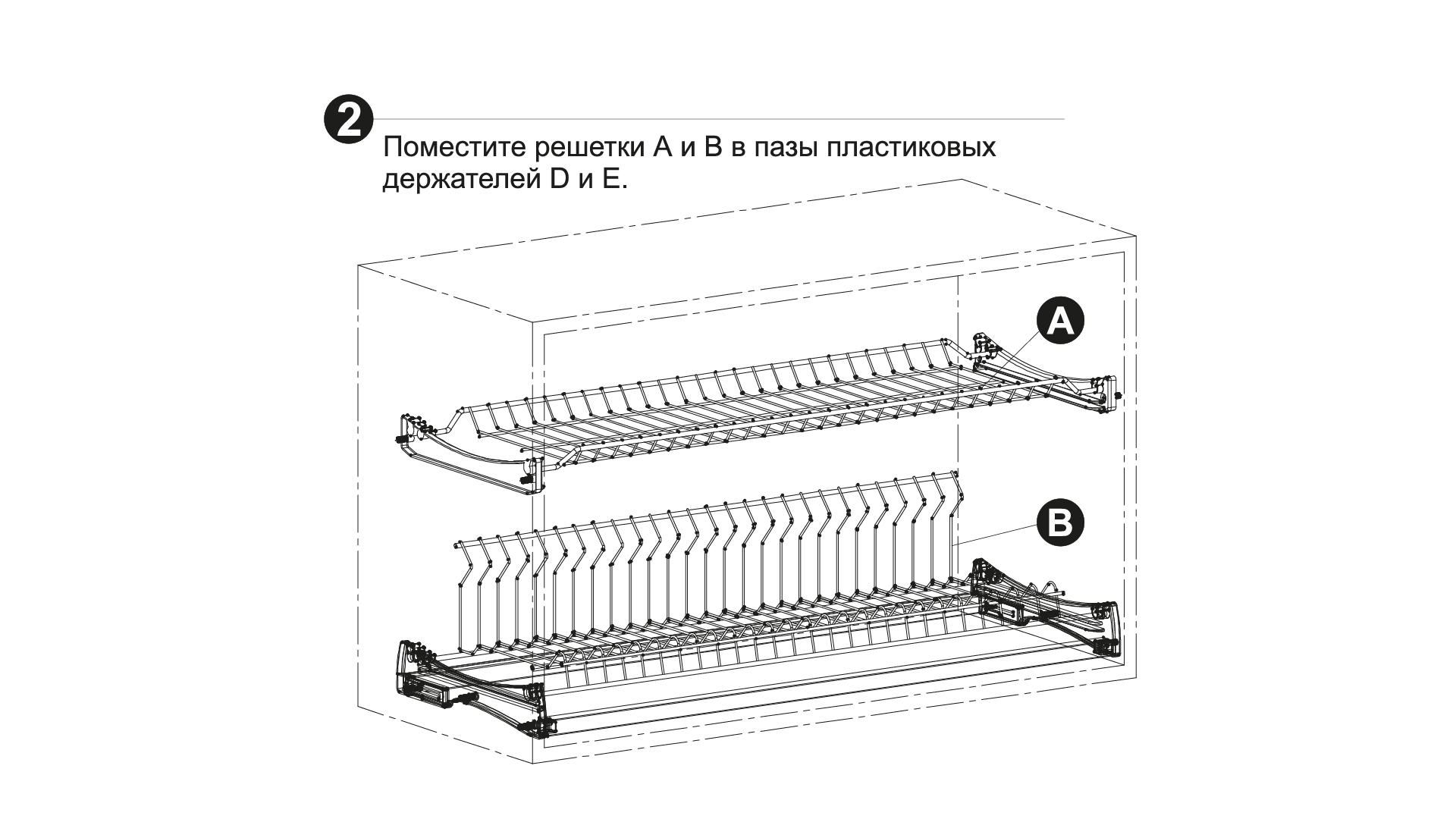 Конструкция LORA SU06 позволяет полностью интегрировать сушку с верхней базой мебели и отрегулировать её по глубине в мебельном коробе. Пластиковые держатели нижнего яруса и алюминиевая трубка имеют специальный паз для установки задней стенки мебельного короба. Полезное пространство под сушку по глубине варьируется в диапазоне от 320 до 370 мм. Выдвижной элемент в составе пластиковых держателей нижнего яруса даёт возможность отрегулировать положение сушки до задней стенки в пределах 50 мм.
