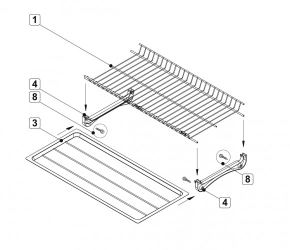Комплект сушки включает 2 яруса для хранения посуды с надёжным гальваническим покрытием с эффектом хромирования, 2 съёмных поддона из качественного бесцветного пластика, 4 пластиковых серых держателя нижнего и верхнего уровней, переднюю и заднюю алюминиевые трубки, саморезы для монтажа сушки и крепления трубки.