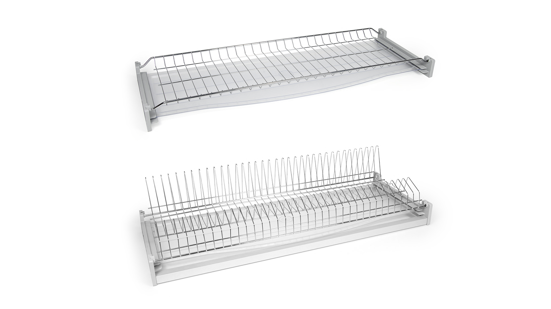 STUDIO 16 SU08 — сушка для посуды в верхнюю базу из прутковой нержавеющей стали для мебели из плит толщиной 16 мм. Модель монтируется в короб без малейших зазоров.