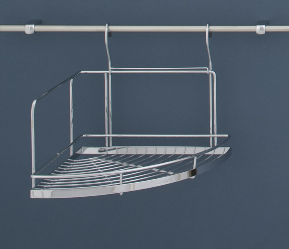Угловая навесная одноярусная полка в виде сектора, с ограничительными планками.  Материал: латунь.