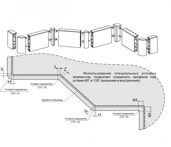 Соединительные углы приобретаются отдельно ( торцевые элементы для профиля не предусмотрены)