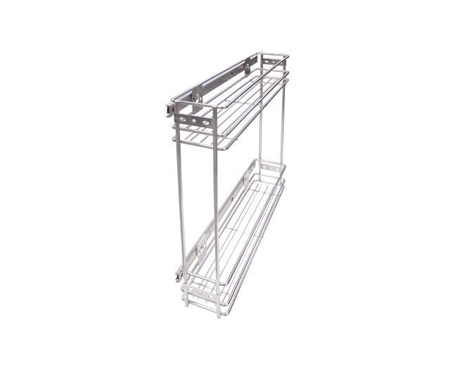• Миниатюрная сетчатая выдвижная конструкция подойдет для узких ниш или шкафов, или займет свободное пространство в нижних модулях гарнитура рядом с другими выдвижными корзинами. В зависимости от зоны расположения конструкции, ее можно использовать для разных целей. В зоне мойки корзина может стать удобным местом хранения бытовой химии и аксессуаров, которые позволяют поддерживать чистоту в доме.
