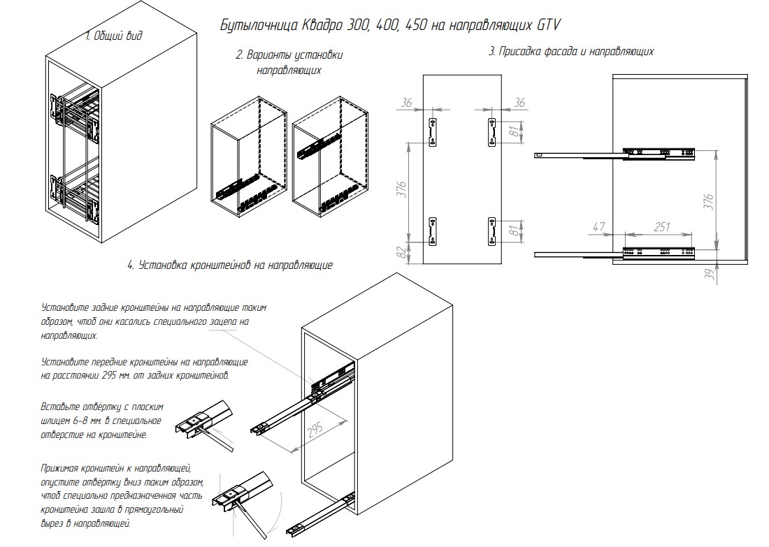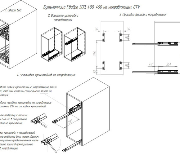 Крепление направляющих: диагональное (рекомендуемое), нижнее.