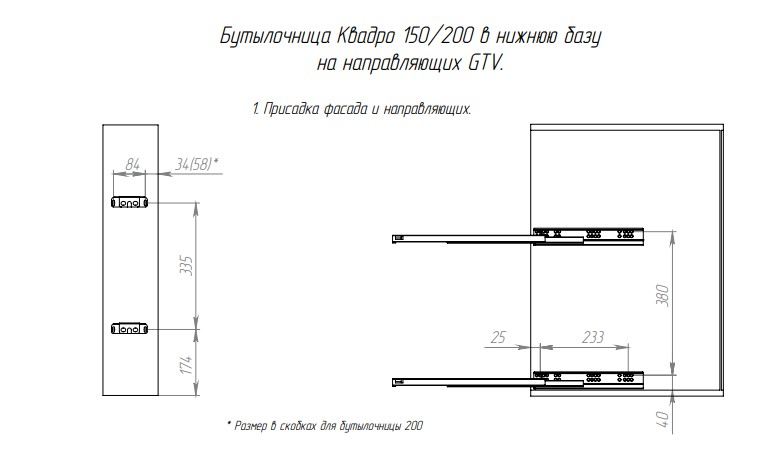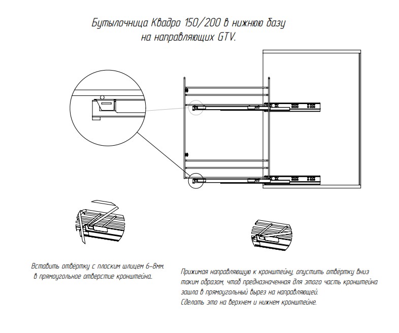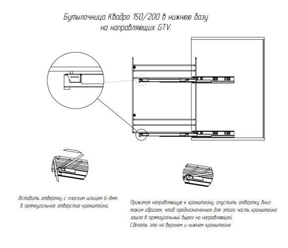 Cargo mini 150мм Квадро GTV + направл. GTV, бок.крепл. Правая, с крепл. к фасаду