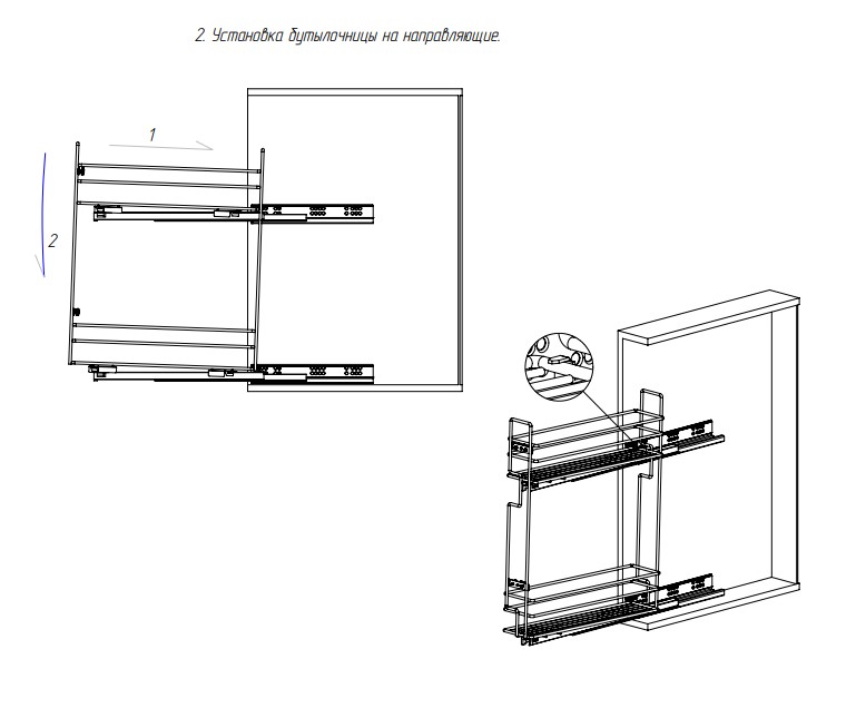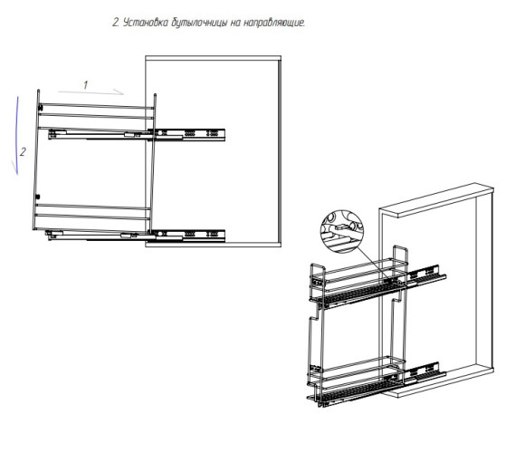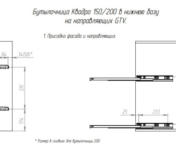 Cargo mini 200мм Квадро GTV + направл. GTV, бок.крепл. Правая, с крепл. к фасаду