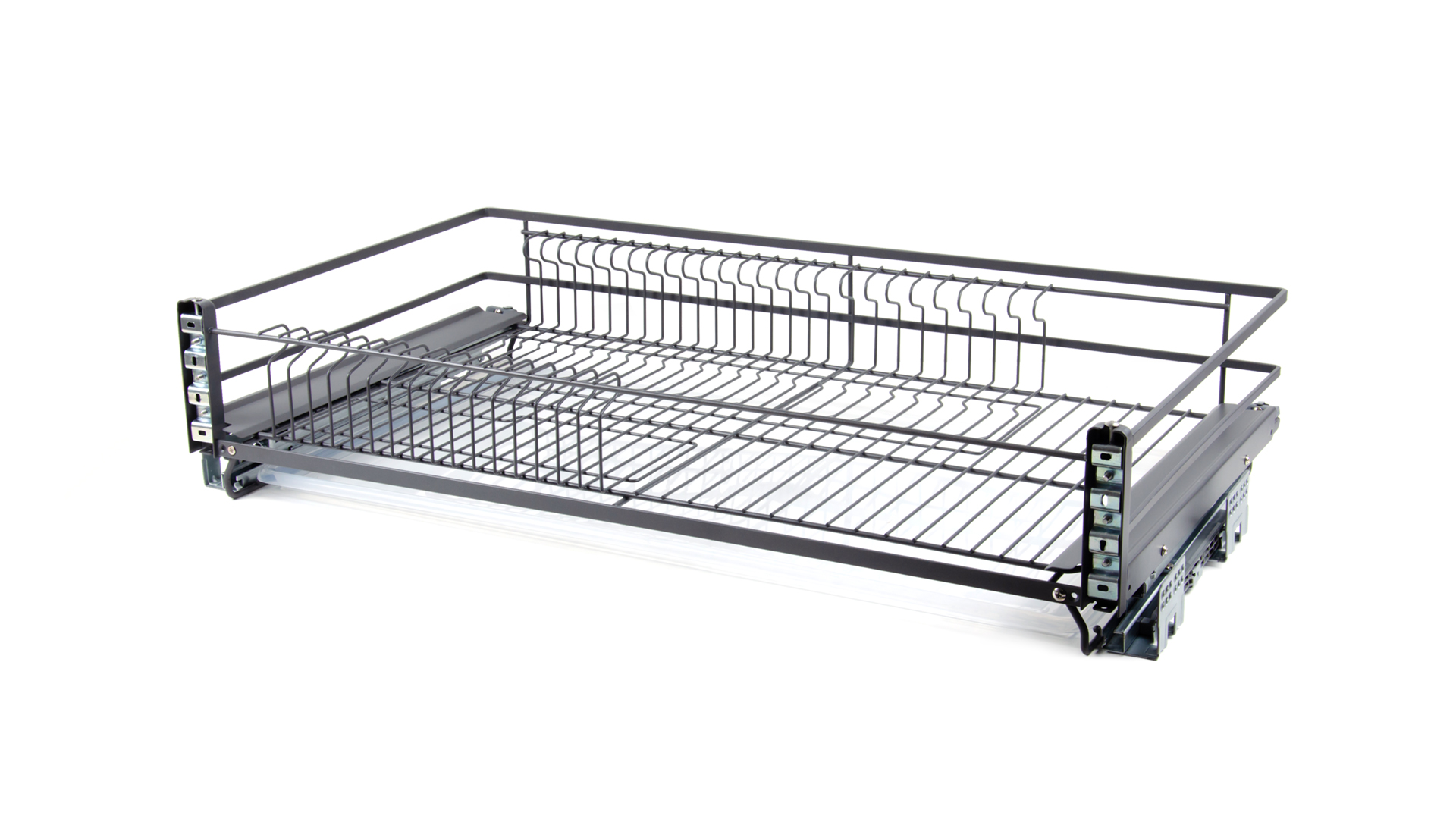MIRA KRS06 — выдвижная корзина-сушка в эксклюзивном дизайне с плоским прутком предназначена для хранения разноплановой посуды в нижней базе мебельного гарнитура.
